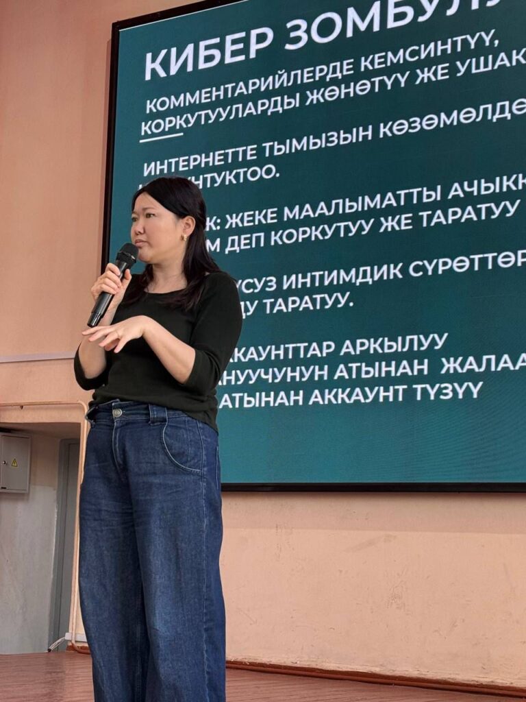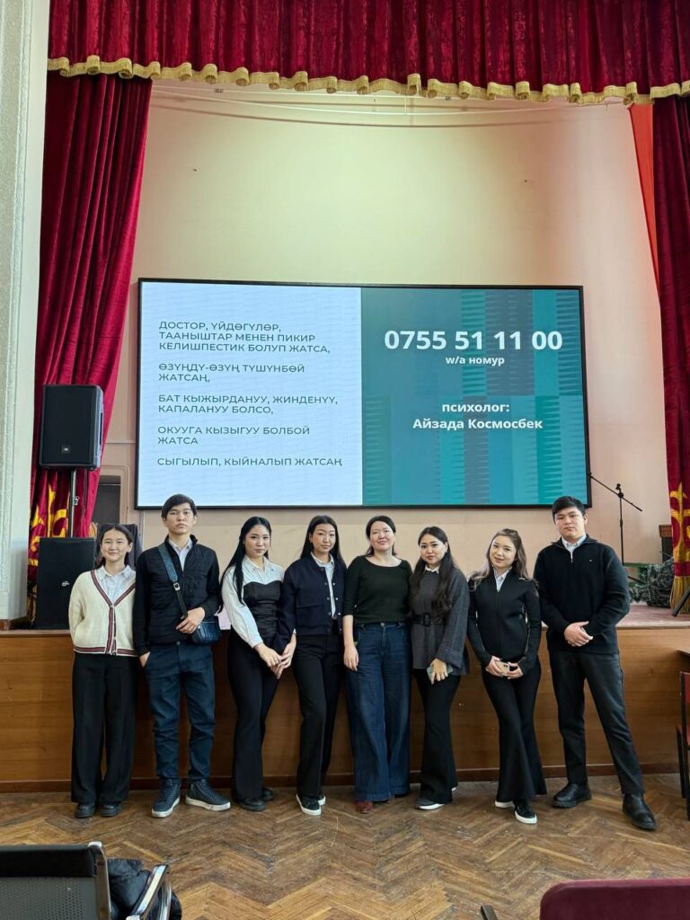 Зомбулукка кабылганда эмне кылыш керек жана кайда кайрылуу керектигин психолог Айзада Космосбек студенттерибизге ачык лекциянын алкагында айтып берди.