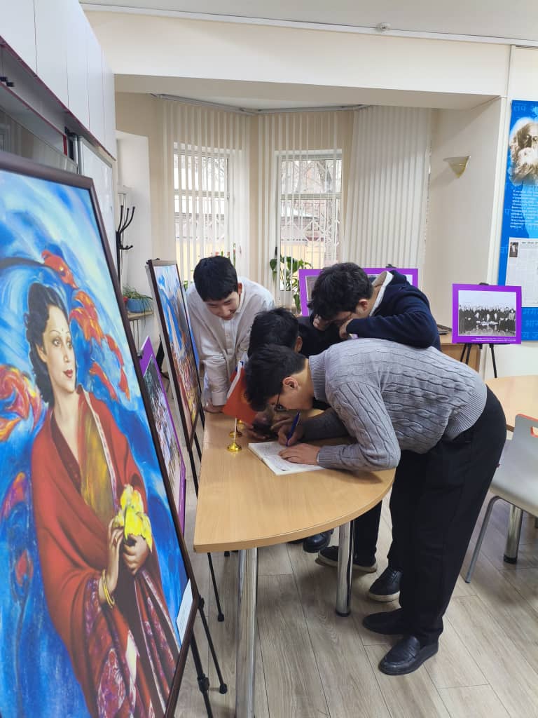 2026-жылдын 3-февралында БФЭТ китепканасынын кызматкери Сүйөрбек кызы Кыял 1-курстун Бух-2-25 тайпасынын студенттери менен бирге Эл аралык Рерих борборунун Тянь-Шань Рерих коомунун жетекчиси  Синенко Светлана Петровнанын чакыруусу менен Россия үйүндө өтүп жаткан «Сулуулардын жарчысы» көргөзмөсүнө катышышты. Көргөзмөдө Светлана Синенко уникалдуу сүрөттөрдү, адабияттарды жана даректүү тасмалардан үзүндүлөрдү тартуулады. Коюлган экспонаттардан Рерихтин үй-бүлөсүнүн коомдук ишмердүүлүгү, илимге жана искусствого кошкон салымы жөнүндө көрүүгө болот. Студенттерге көргөзмө жакшы манай тартуулады.