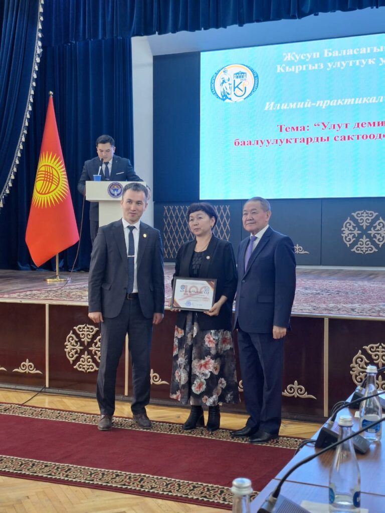 10-февралда окуу жайыбыздын мугалимдери Мамышева А.А. жана Касмалиева Г. Ш. Ж. Баласагын атындагы Кыргыз улуттук университетинде өткөн конференцияга катышып келишти. Конференция “Улут деми жана улуттук баалуулуктарды сактоодогу адамзаттын ролу” деген темада өтүп, көптөгөн коноктор чакырылган. Мамышева А. А. “Формирование этнотолерантности на уроках русской литературы” темасында, Камалиева Г. Ш. “Ак бата – элдин руханий мурасы” темасында доклад окушту. Улуттук демди жана улуттун философиясын, дүйнө таанымын, руханий баалуулуктарын, маданий өзгөчөлүктөрүн сактоо, өнүктүрүү жана кийинки муунга мурас катары калтыруудагы адамзаттын ролун илимий-практикалык негизде талдоо максатында өткөрүлгөн иш чара жогорку деңгээлде, уюшкандыкта өттү. Конференцияны окуу жайдын алдындагы Кесиптик колледжинин окутуучулар жамааты уюштурушкан. Биздин мугалим эжелерибизге педагогогика илимдеринин доктору, профессор Ишекеев Назаркул агай Ыраазычылык кат тапшырып, иштерине ийгиликтерди каалады.